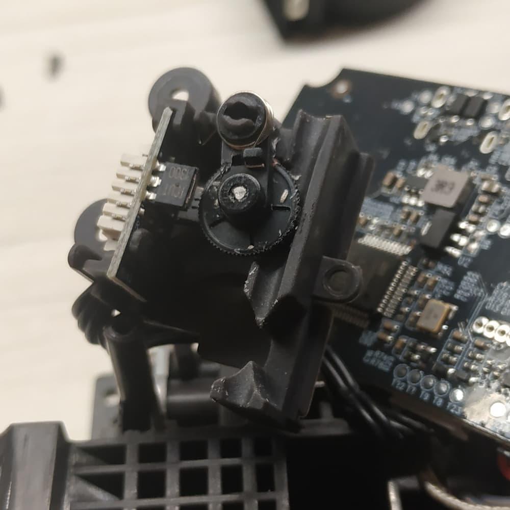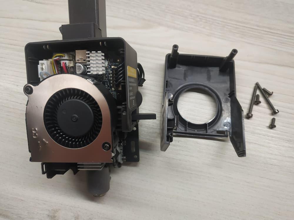 Печатная плата держится на одном шурупе, но выкручивать его нужно очень аккуратно, чтобы отвёртка не соскочила, иначе можно поломать резисторы на плате. Под платой спрятан датчик движения филамента.