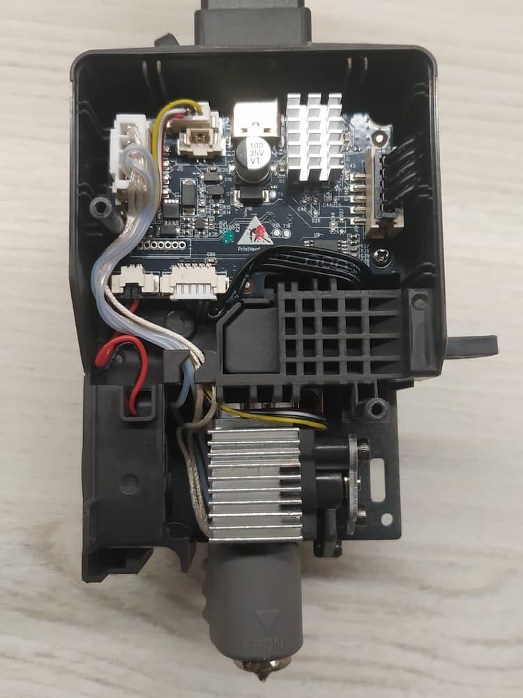 Принтер Эникубик кобра 3 макс начал выдавать ошибку CODE:11518 - засор сопла, пробка. Ошибка вылезала сразу после минуты печати. Как позже выяснилось ошибка была из-за системы подачи пластика, но в поисках неисправности я разобрал экструдер. Далее фотографии как устроен экструдер. Сразу скажу что голова довольно технологичная и без необходимости туда лучше не лезть, очень легко сломать.